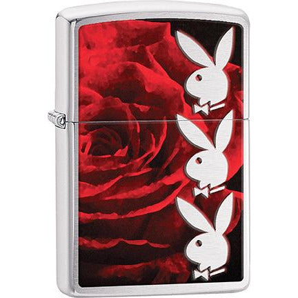 Zippo Windproof Metal Design Fire Lighter - Lifetime Refillable, Reusable Lighter for Smokers – Genuine Premium, Durable, Heavy Quality Chrome Finish Case - 3 Playboy Bunnies on a Red Rose