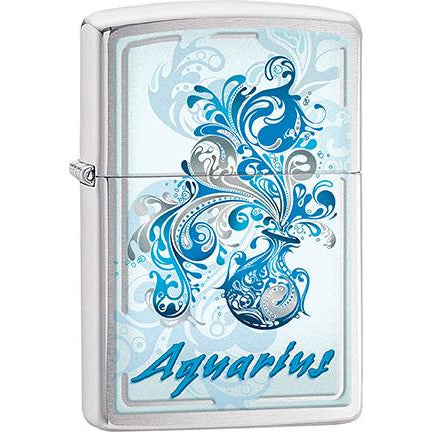 Zippo Windproof Metal Design Fire Lighter - Lifetime Refillable, Reusable Lighter for Smokers – Genuine Premium, Durable, Heavy Quality Chrome Finish Case - Aquarius