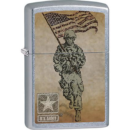 Zippo Windproof Metal Design Fire Lighter - Lifetime Refillable, Reusable Lighter for Smokers – Genuine Premium, Durable, Heavy Quality Chrome Finish Case - Army Soldier holding U.S. Flag