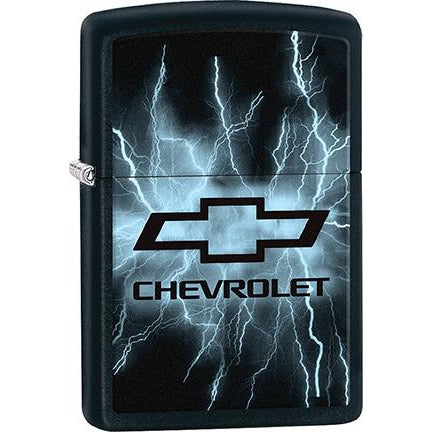 Zippo Windproof Metal Design Fire Lighter - Lifetime Refillable, Reusable Lighter for Smokers – Genuine Premium, Durable, Heavy Quality Chrome Finish Case - Black Chevy Logo with Blue Lightning on Black Base.