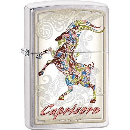 Zippo Windproof Metal Design Fire Lighter - Lifetime Refillable, Reusable Lighter for Smokers – Genuine Premium, Durable, Heavy Quality Chrome Finish Case - Capricorn