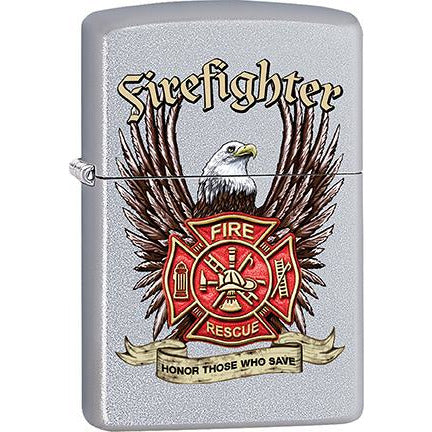 Zippo Windproof Metal Design Fire Lighter - Lifetime Refillable, Reusable Lighter for Smokers – Genuine Premium, Durable, Heavy Quality Chrome Finish Case - Fire Fighter Crest and Eagle "Honor Those Who Save"