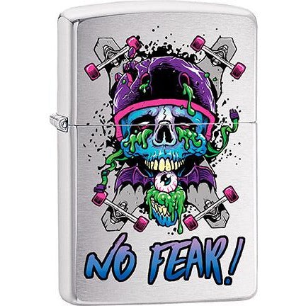 Zippo Windproof Metal Design Fire Lighter - Lifetime Refillable, Reusable Lighter for Smokers – Genuine Premium, Durable, Heavy Quality Chrome Finish Case - "No Fear" Colorful Skateboard Skull