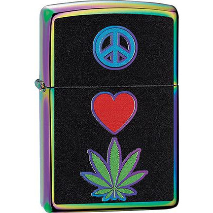 Zippo Windproof Metal Design Fire Lighter - Lifetime Refillable, Reusable Lighter for Smokers – Genuine Premium, Durable, Heavy Quality Chrome Finish Case - Peace Love Marijuana