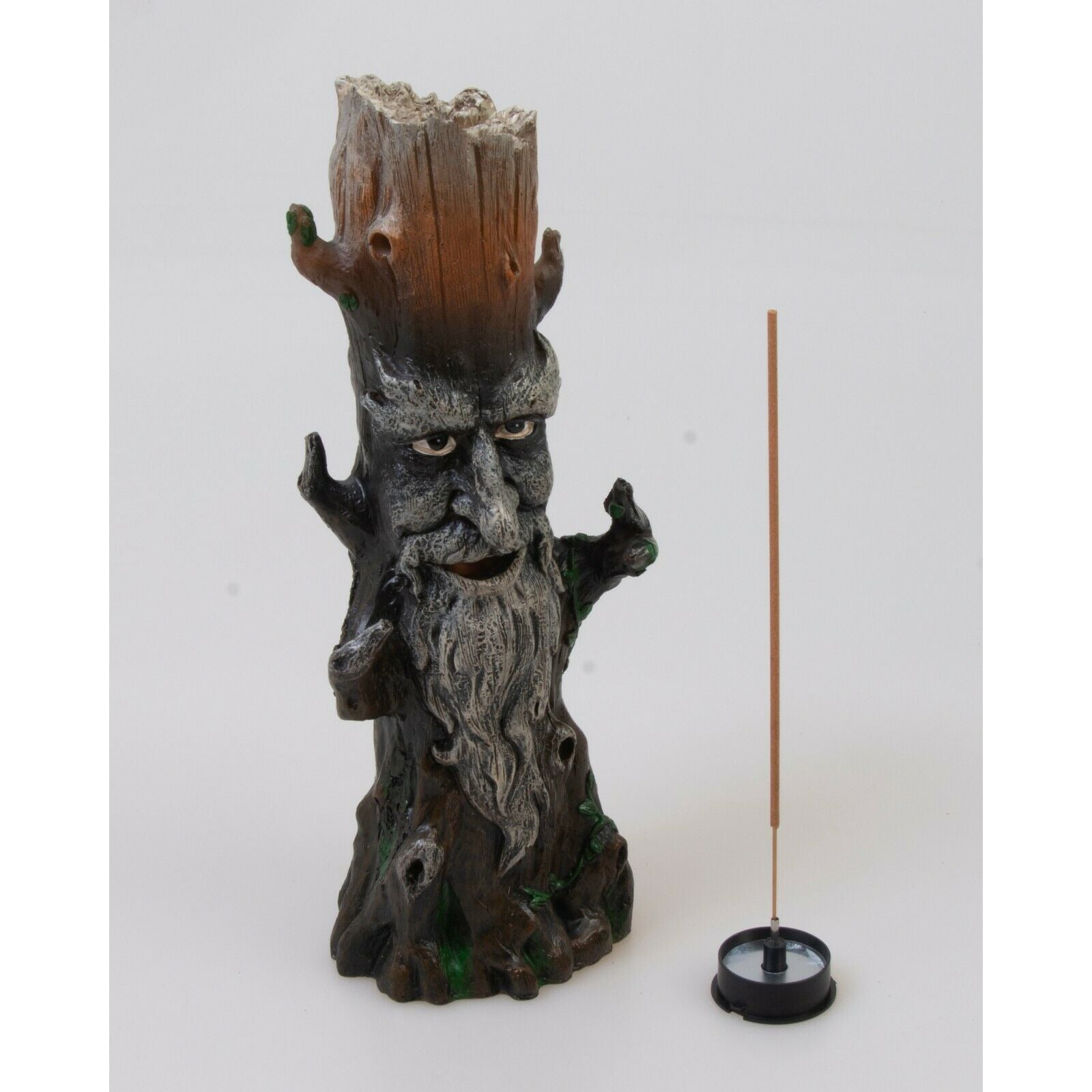 HANDCRAFTED: Quality construction and individually handcrafted of durable polyresin. It is a collectible conversational sculpture. This smiley face incense stick burner is a conceptually genius figurine depicting the wisdom of the tree man forest spirit. Light up an incense stick and see smoke exiting through the holes, creating a mysterious forest atmosphere.
