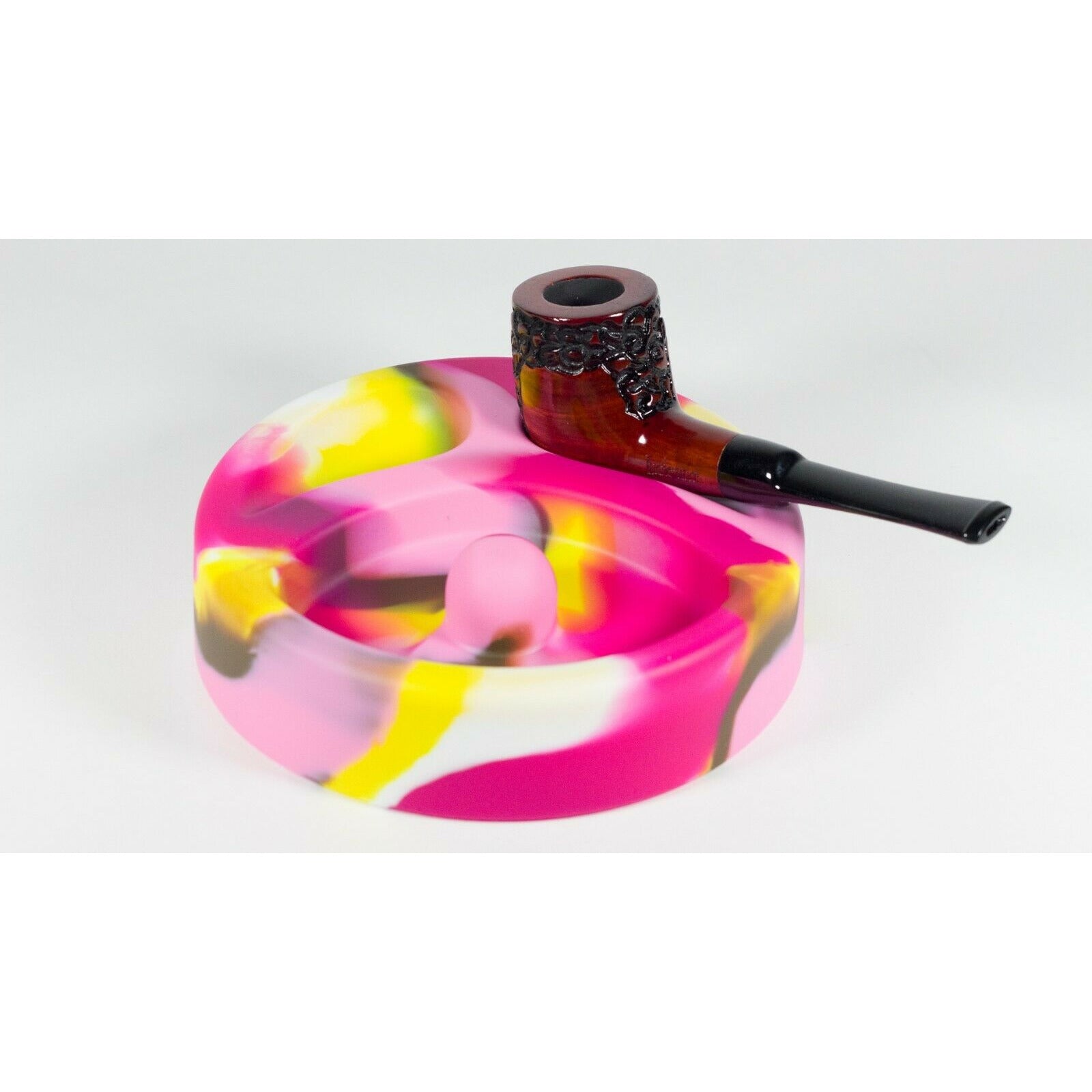 Round Camouflage Style Silicone Pipe Ashtray with Cork Holds 2 Pipes - Individualized Popular Home Office Ashtray Personality Trend Modern Home Tea Table Ashtray Ornaments Bar Ashtray - Pink 6”
