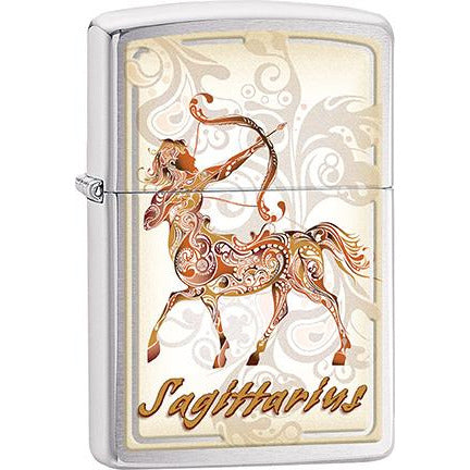 Zippo Windproof Metal Design Fire Lighter - Lifetime Refillable, Reusable Lighter for Smokers – Genuine Premium, Durable, Heavy Quality Chrome Finish Case - Sagittarius