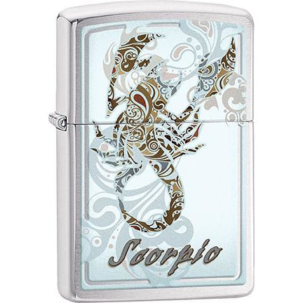 Zippo Windproof Metal Design Fire Lighter - Lifetime Refillable, Reusable Lighter for Smokers – Genuine Premium, Durable, Heavy Quality Chrome Finish Case - Scorpio