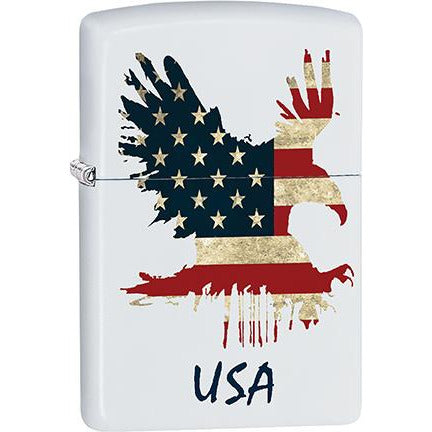 Zippo Windproof Metal Design Fire Lighter - Lifetime Refillable, Reusable Lighter for Smokers – Genuine Premium, Durable, Heavy Quality Chrome Finish Case - USA Flag in Eagle Shape.