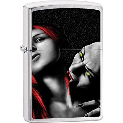 Zippo Windproof Metal Design Fire Lighter - Lifetime Refillable, Reusable Lighter for Smokers – Genuine Premium, Durable, Heavy Quality Chrome Finish Case - Vampire Sucking Blood From Neck