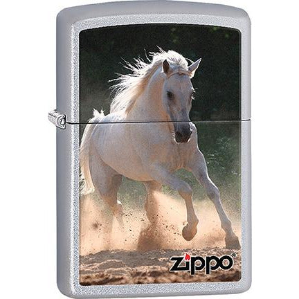 Zippo Windproof Metal Design Fire Lighter - Lifetime Refillable, Reusable Lighter for Smokers – Genuine Premium, Durable, Heavy Quality Chrome Finish Case - White Horse Running