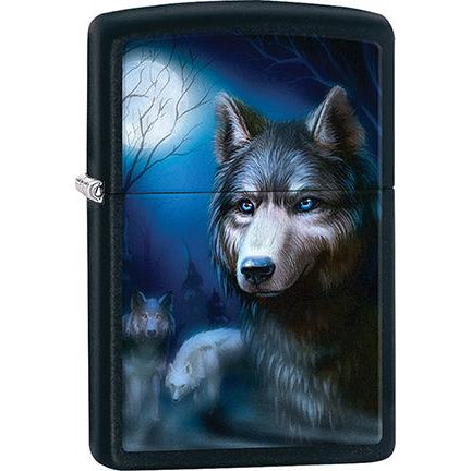 Zippo Windproof Metal Design Fire Lighter - Lifetime Refillable, Reusable Lighter for Smokers – Genuine Premium, Durable, Heavy Quality Chrome Finish Case - Wolf with Blue Eyes in Moonlight